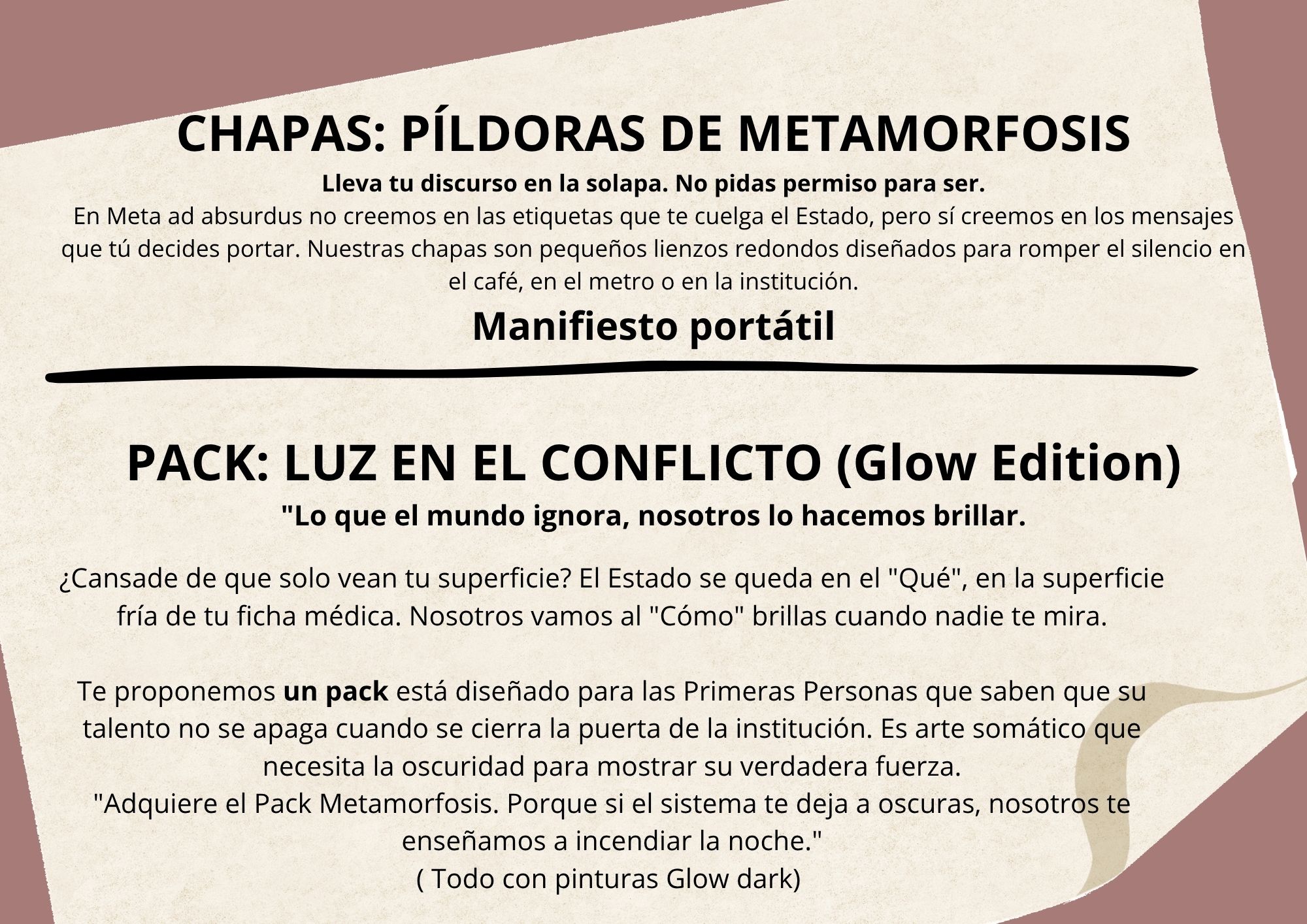 Meta ad absurdus pausa, rompe, recuerda, consolida lo que tiene todo humano y que nos hace iguales: el dolor. Dos sujetos, ya cansados de este conformismo, se formaron y experimentaron una alternativa absurda, basada en el amor.